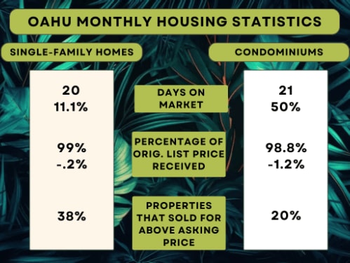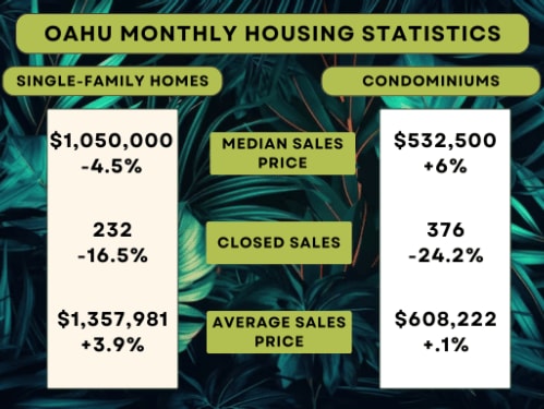 The market for single-family homes in Oahu stayed strong with more than 200 homes being sold on average each month for the past year. However, last month, there was a slight decrease as 232 properties were sold, which is 16.5% less compared to the same time last year.